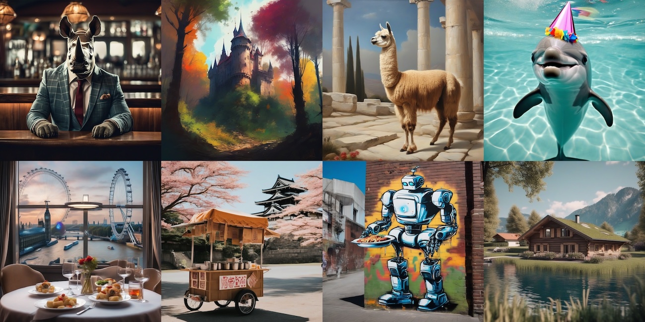 Under the hood, this demo runs on several TPU v5e-4 instances (each instance has 4 TPU chips) and takes advantage of parallelization to serve four large 1024Γ1024 images in about 4 seconds. This time includes format conversions, communications time, and frontend processing; the actual generation time is about 2.3s, as will be shown below!